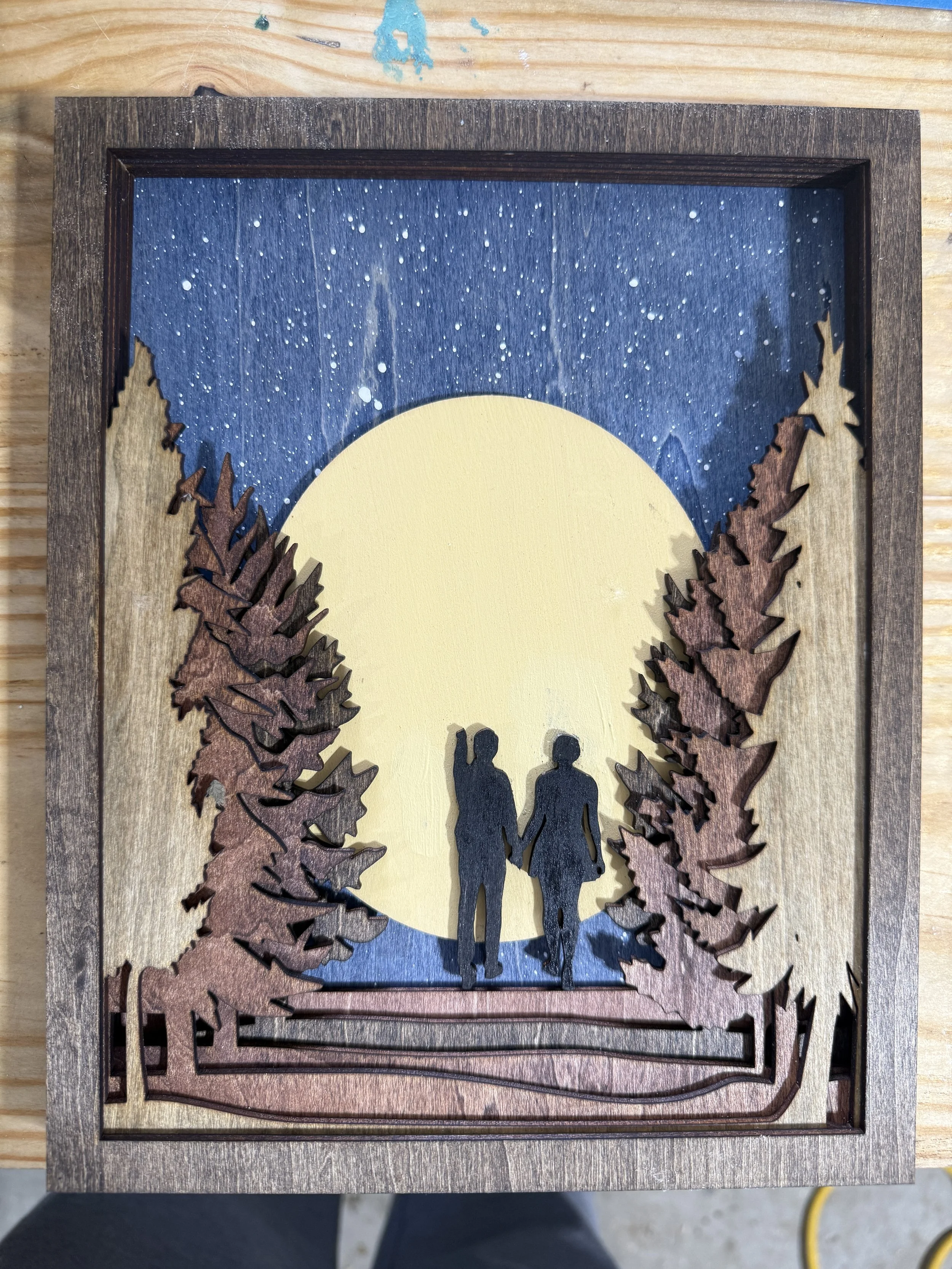 For Sale › Sunset Walk Image 1 of 1 Sunset Walk $60.00 8” x 10” wall art 8 layers deepCan be custom engraved Quantity: Add To Cart Added! 8” x 10” wall art 8 layers deepCan be custom engraved